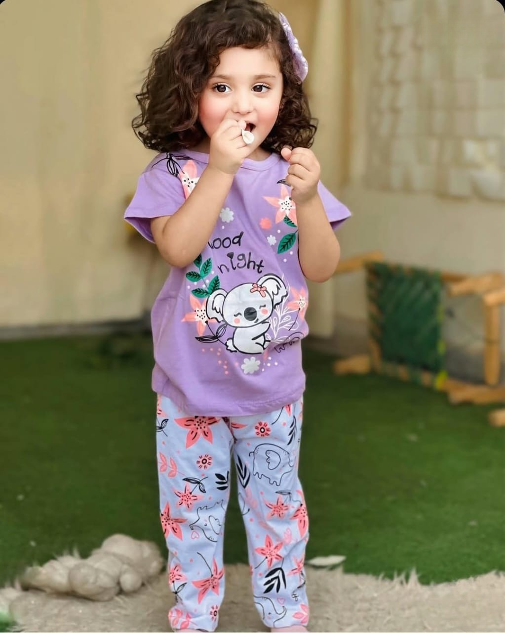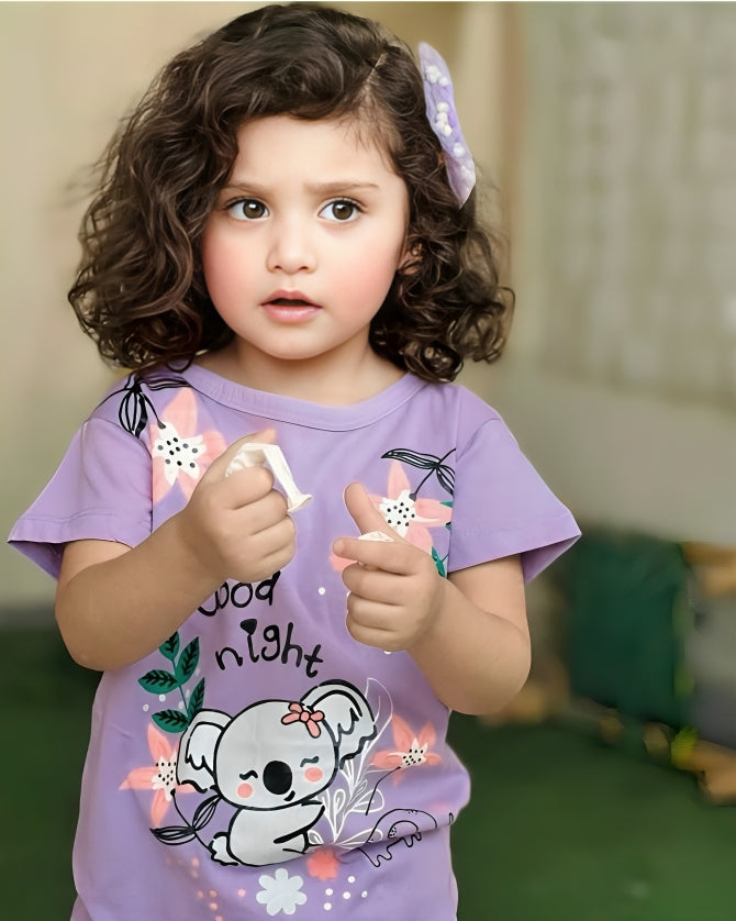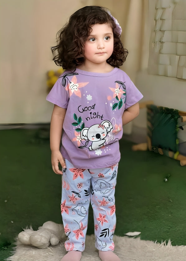 Lilac Good Night Flower Print Night Wear - Big Bazar