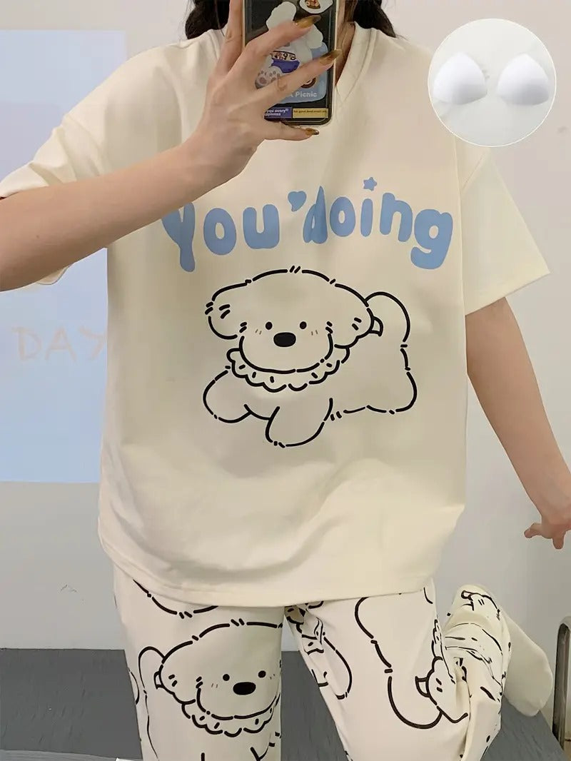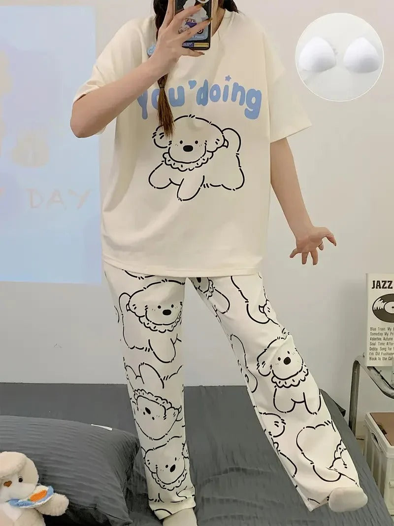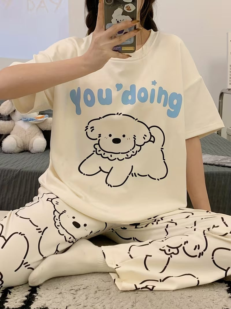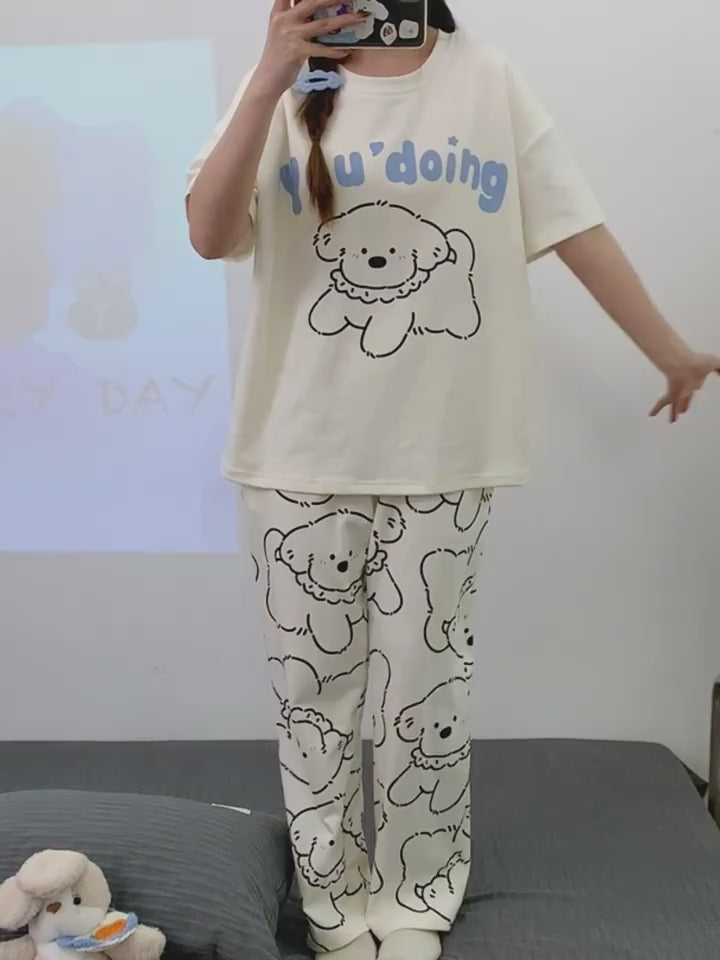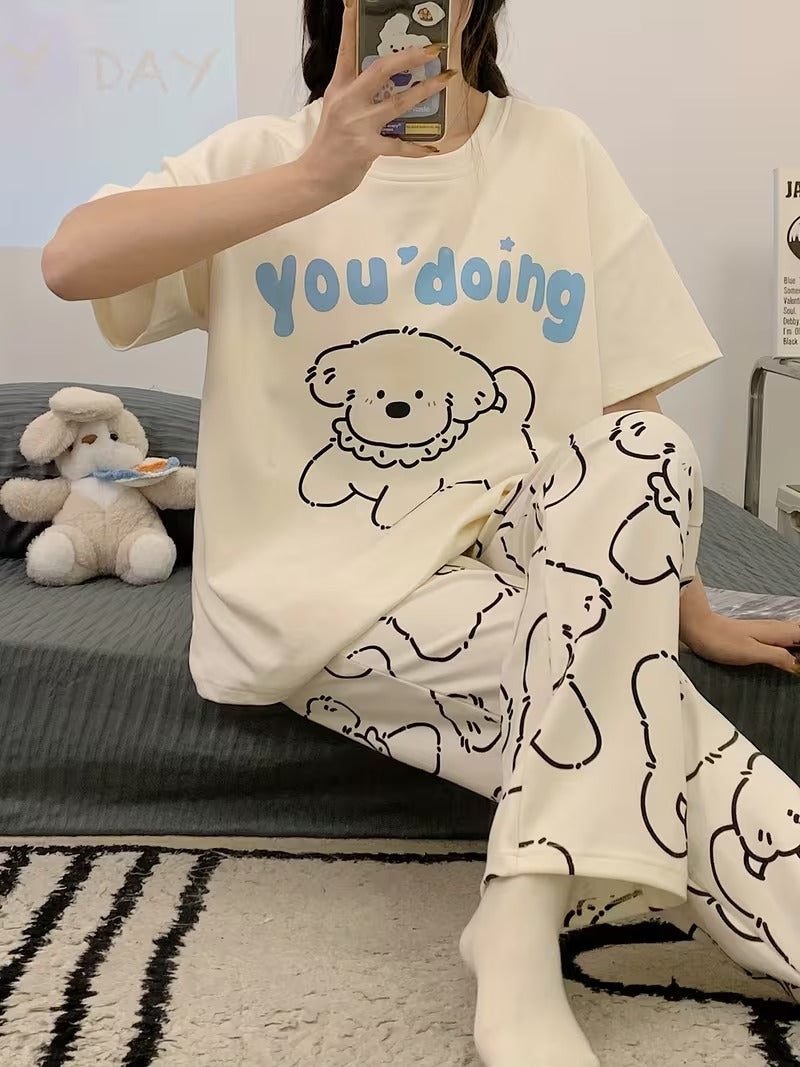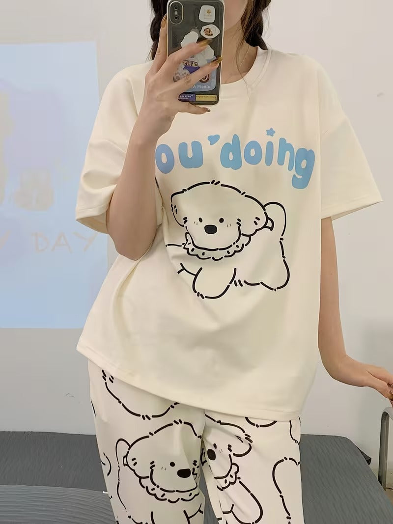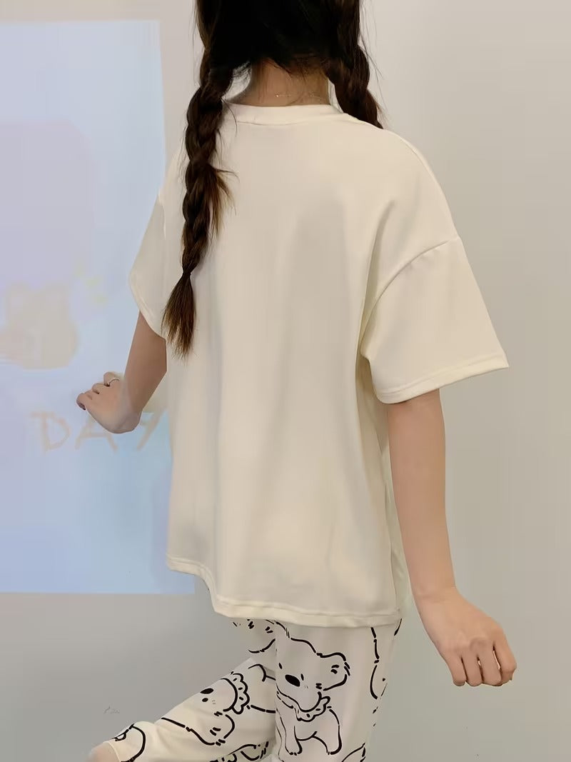 Puppy Printed Half Sleeves Pajama Sets