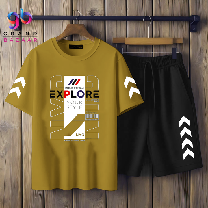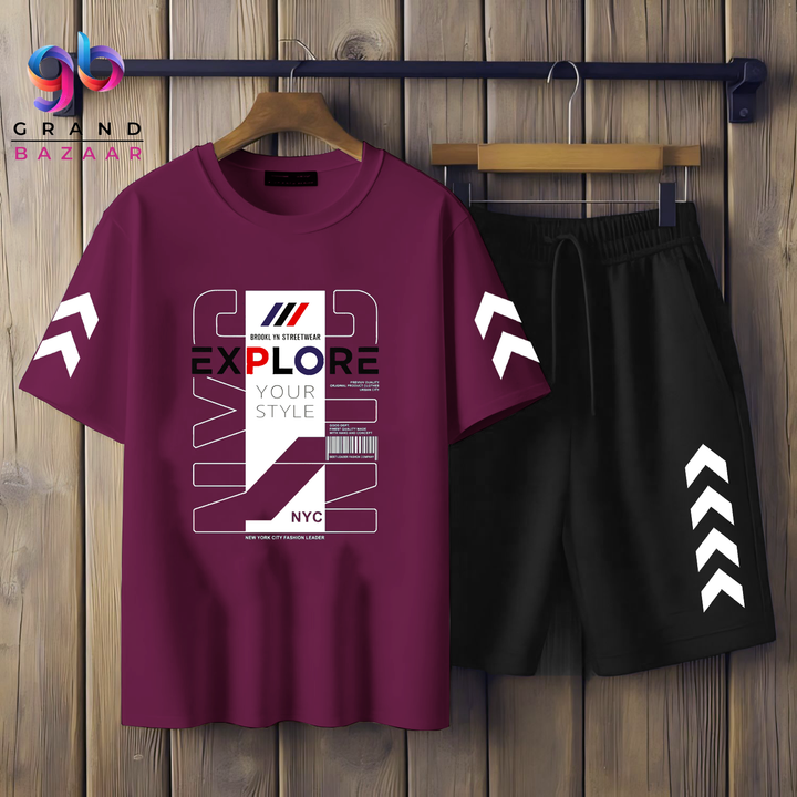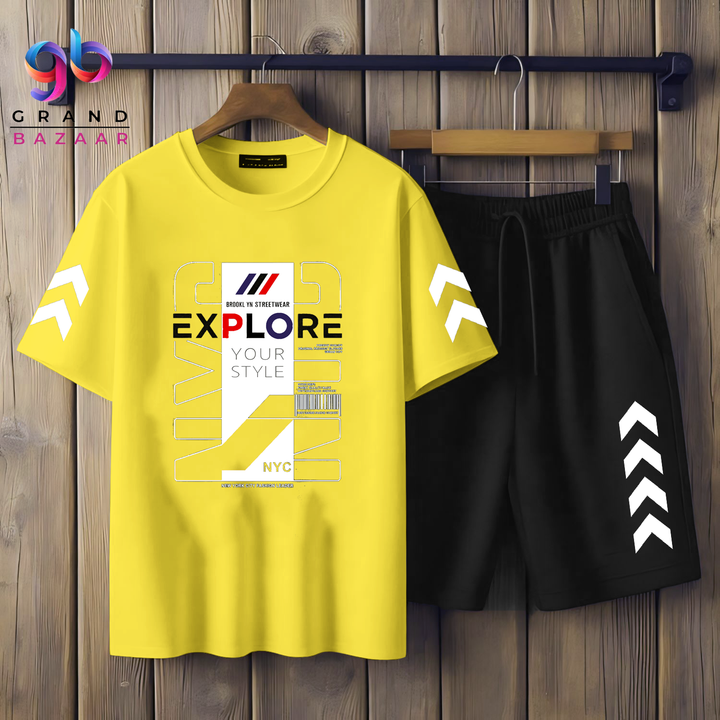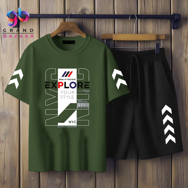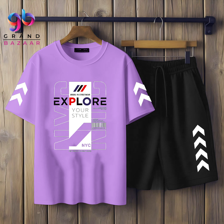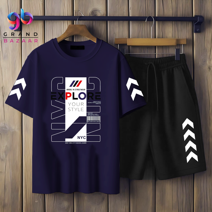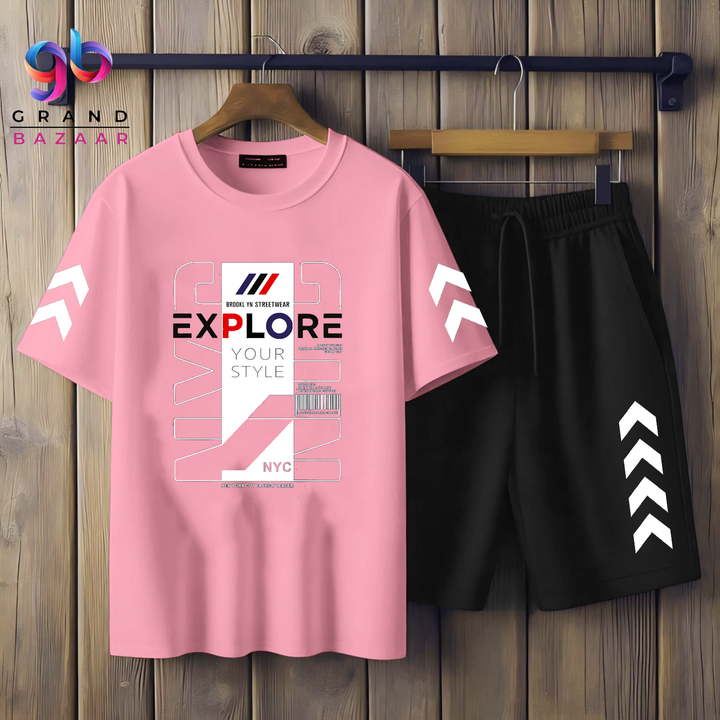 latest EXPLORE printed Tshirt and Trouser with half sleeves round neck Export quality T- shirts and jogging Pants New Arrival for Men