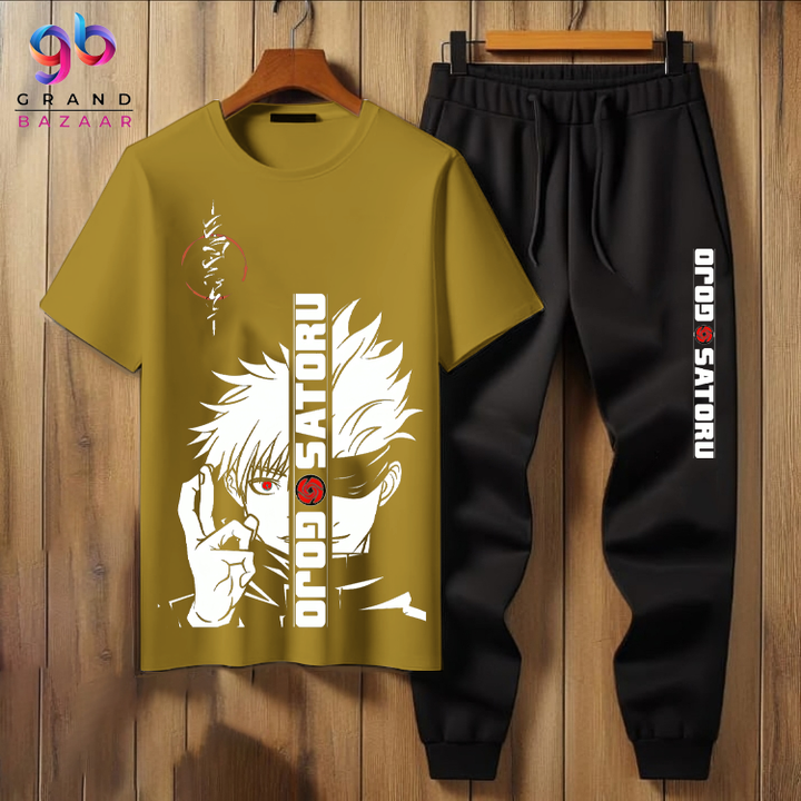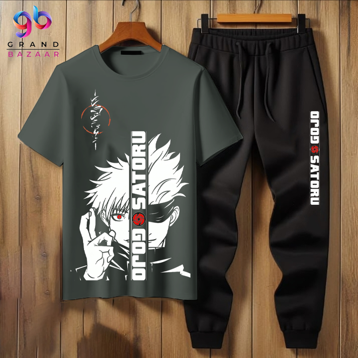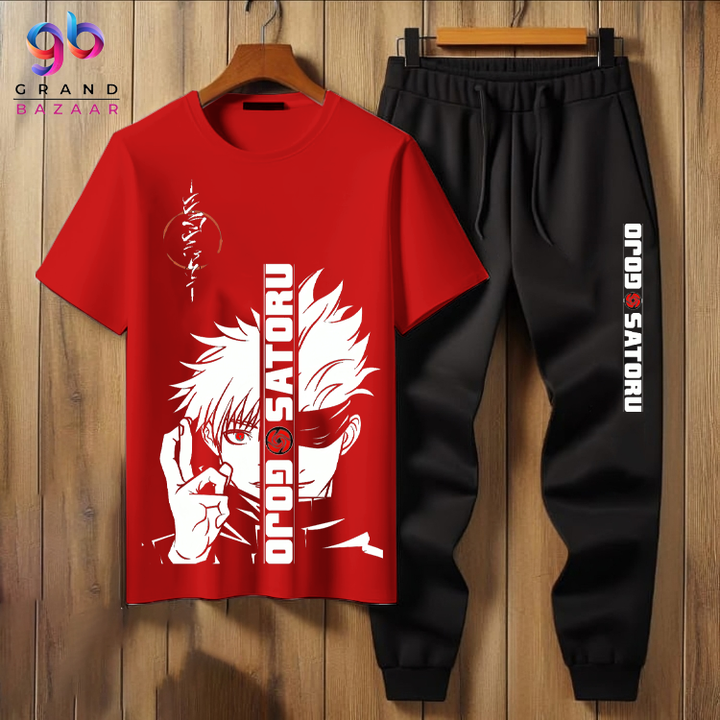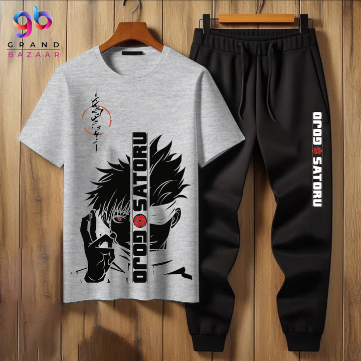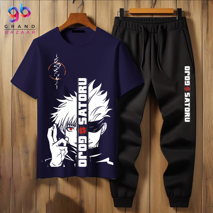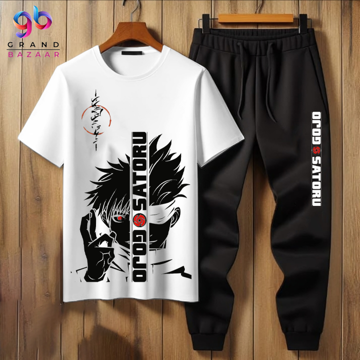 Latest GOJO SATORU Printed Tshirt and Trouser with half sleeves Round neck export Quality T shirt and jogging Pants New Arrival for Men