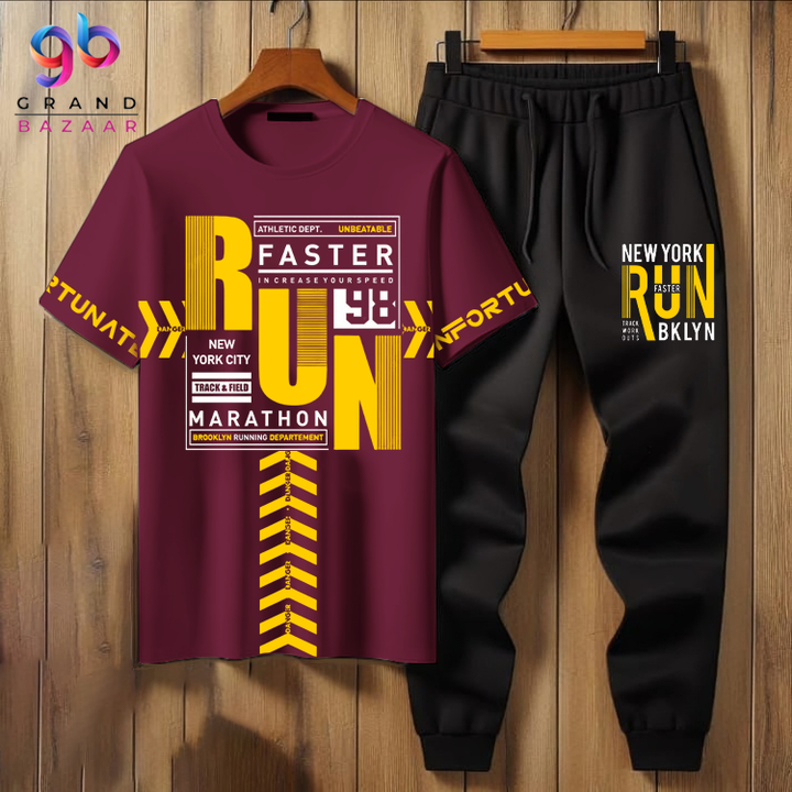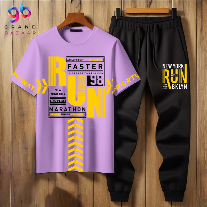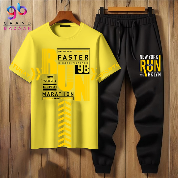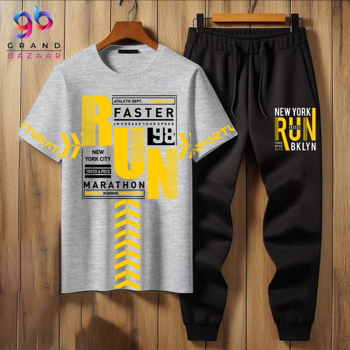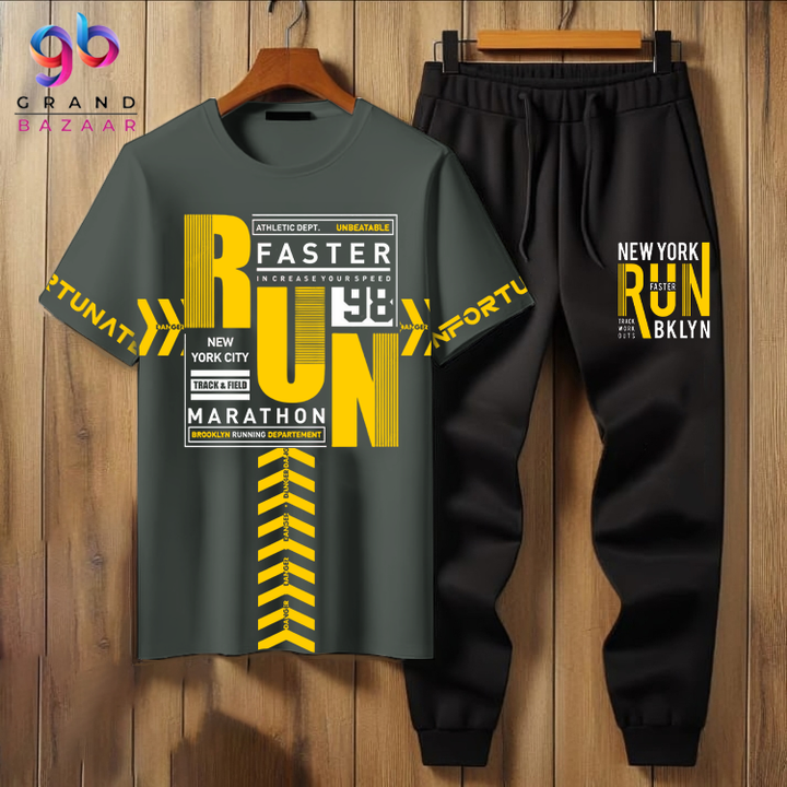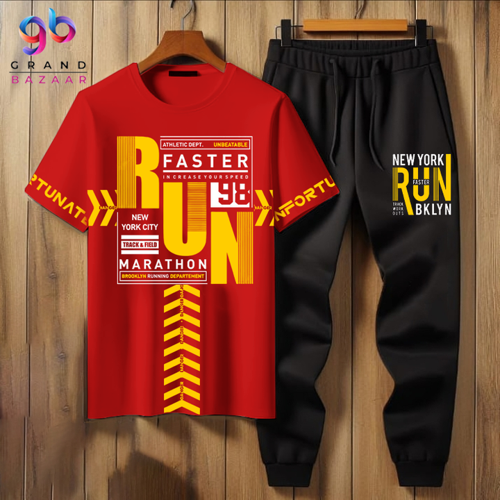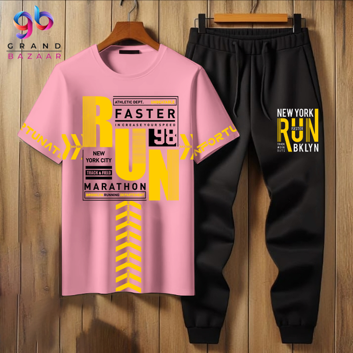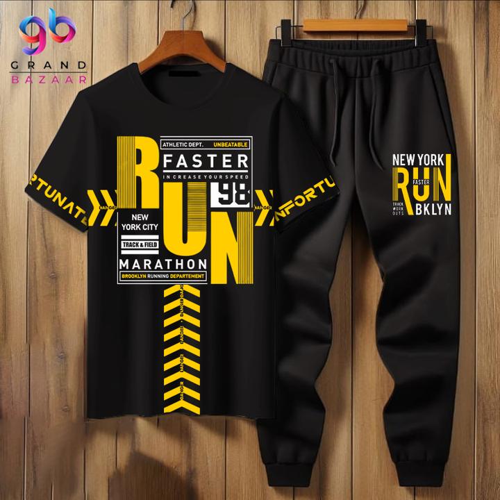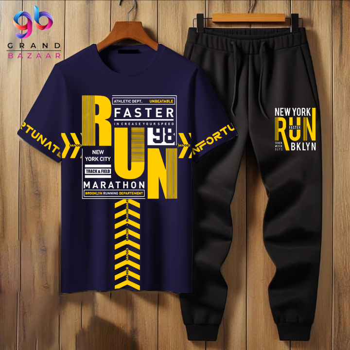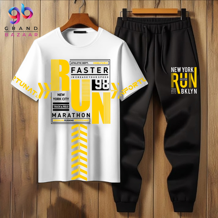 latest FASTER printed Tshirt and Trouser with half sleeves round neck Export quality T- shirts and jogging Pants New Arrival for Men